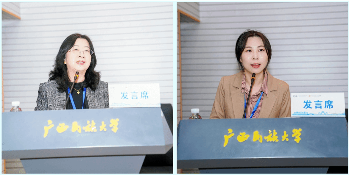 大会主旨报告环节邀请了八位国际中文教育专家分享最新研究成果与创新方法。11月1日的主旨报告由中央民族大学国际教育学院刘玉屏教授和广西民族大学文学院何山燕副院长分别主持。北京师范大学王学松教授的报告《国际中文教育新标准与教师队伍建设》结合三部国际中文教育领域内的标准类文件,探讨了新时代国际中文教师专业能力提升路径。北京大学长聘副教授林小英的报告《质性研究的新兴模式:重构感知世界》阐述了文学、图像和听觉等思维模式的质性研究,为国际中文教育领域提供了创新方法,并展示了基于这一方法的实践案例。北京语言大学杨玉玲教授的报告《基于实证的外向型汉语学习词典 “学习性” 研究》分享了外向型汉语学习词典的实证研究,提供了汉语学习词典的优化方向。北京外国语大学张天伟教授的报告《Q方法在国际中文教育政策研究中的应用》结合具体研究,介绍了Q方法在捕捉政策利益相关者多元主观立场方面的创新实践。