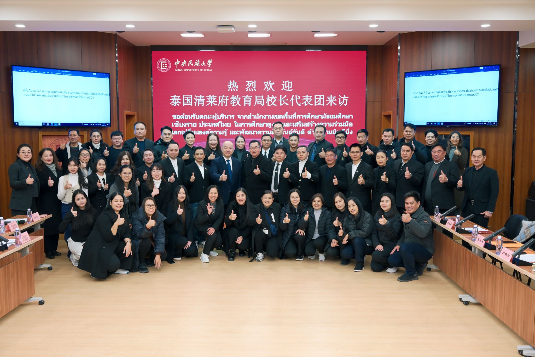 2025年11月24日上午,泰国清莱府教育局局长欧伟权先生率泰国二十四所学校校长组成的访问团一行44人到访我校国际教育学院,双方围绕人工智能技术融入中文教学等议题进行了深入交流,共绘中泰教育合作新篇章。