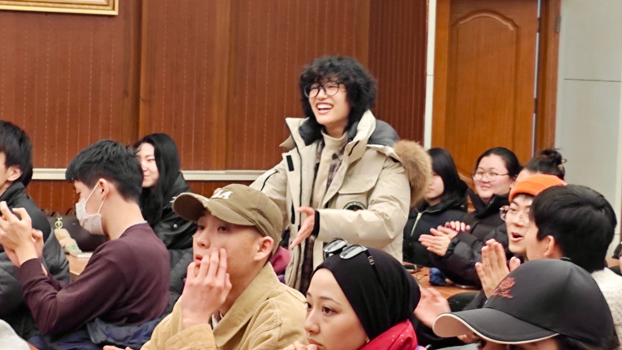 随后,王仁杰警官为留学生们作了中国法律法规的专题讲座。他重点介绍了中国关于毒品及药物管制的严格规定,提醒大家遵守法律、远离毒品。同时,王警官还就留学签证的相关政策进行了详细说明,并耐心解答了学生们的疑问。