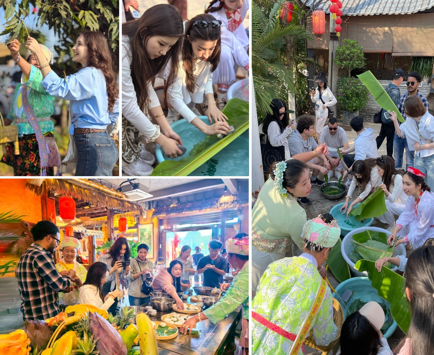 活动期间,留学生们开启了丰富多彩的文化体验之旅。一是茶文化研学。走进白茶馆,了解大白茶的种植、制作工艺与品饮文化,观看学习采茶、制茶工艺,品尝和感受中国茶文化的深厚底蕴与独特韵味;二是民俗文化体验。在勐卧双塔广场参与采花取水堆沙、万人点灯祈福等傣族传统活动,在文体中心广场参与万人赶摆,融入傣历新年热闹氛围,近距离感受傣族泼水节的文化内涵与民族风情,在民俗体验院落感受彝族说唱文化的魅力;三是体验传统美食文化。从取叶、洗叶、籼糯米制备到包裹上锅,亲手制作傣族美食粑粑;四是非遗文化交流。参观非遗会客厅,与当地非遗传承人面对面交流,了解傣族织锦、彝族刺绣、云南金陀螺等传统技艺,感受非遗文化的生命力与创造力。