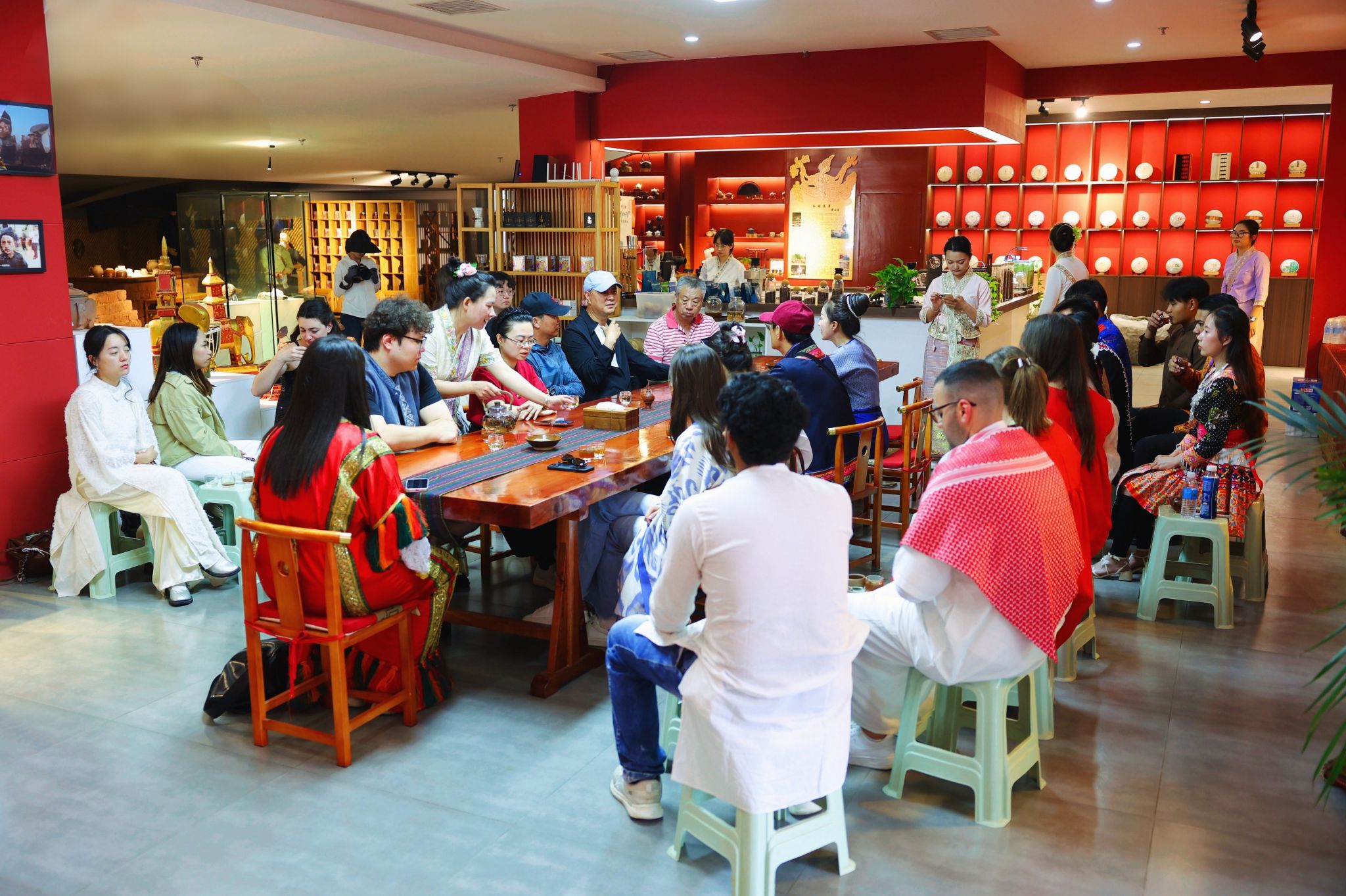 在非遗会客厅举行的大学交流座谈联谊会上,各院校与景谷傣族彝族自治县文旅局负责人就体育运动赛事安排、文化体验活动设计、教学研学基地建设、民族团结进步创建等议题进行了深入交流。座谈会后,留学生们前往勐卧双塔所在的村落,实地考察景谷在脱贫攻坚与乡村振兴中的发展变化,目睹民族地区经济社会发展的丰硕成果。